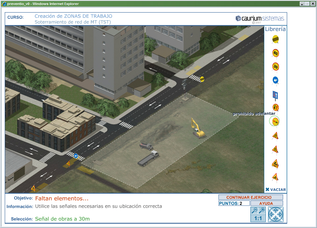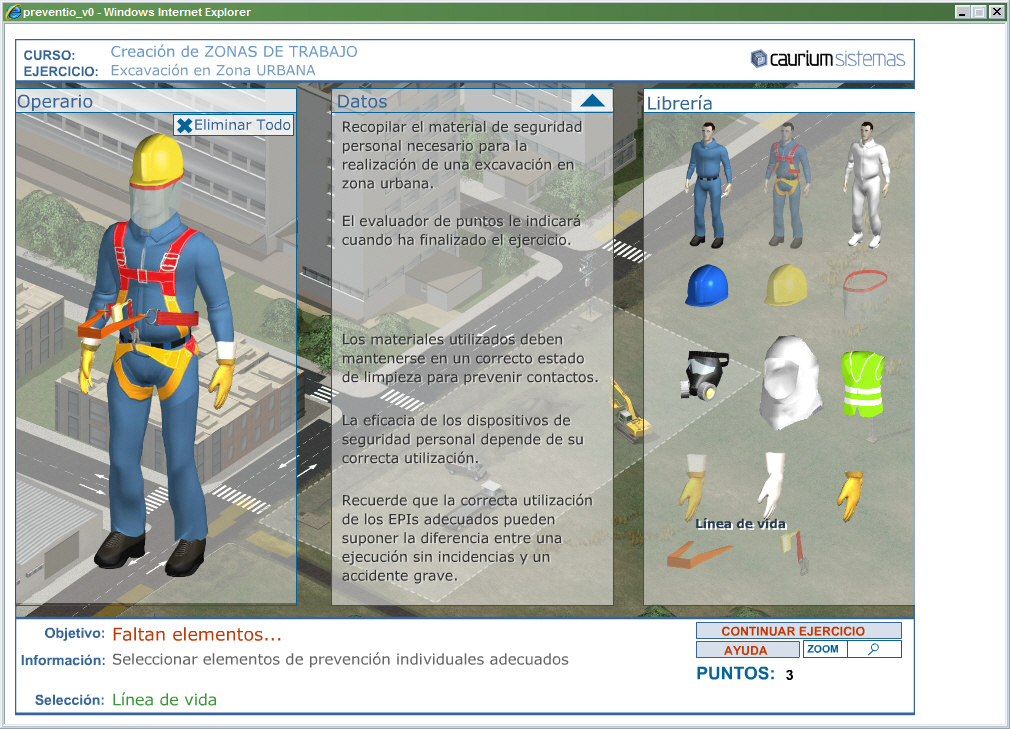 PREVENTIO (2007), es una plataforma de generación de ejercicios de práctica y evaluación para la formación de personal en la preparación de zonas de trabajo, uso de EPI y EPC, señalización, y preparación de materiales para el trabajo.